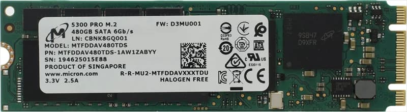 Твердотельный накопитель Micron 5300PRO 480GB SATA M.2(22x80mm) 3D TLC R540/W410MB/s MTTF 3М 85000/36000 IOPS 1324TBW SSD Enterprise Solid State Drive, 1 year, OEMНет — подобрать аналог