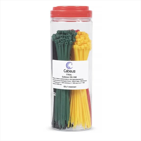 Набор стяжек неоткрывающихся, 150x2.5мм Набор стяжек неоткрывающихся, 150x2.5мм, (100 белых + 100 красных + 100 зеленых + 100 желтых + 100 черных) (500 шт), Cabeus CK-150, 7754cCK-150· CabeusВ наличииВойти для цены