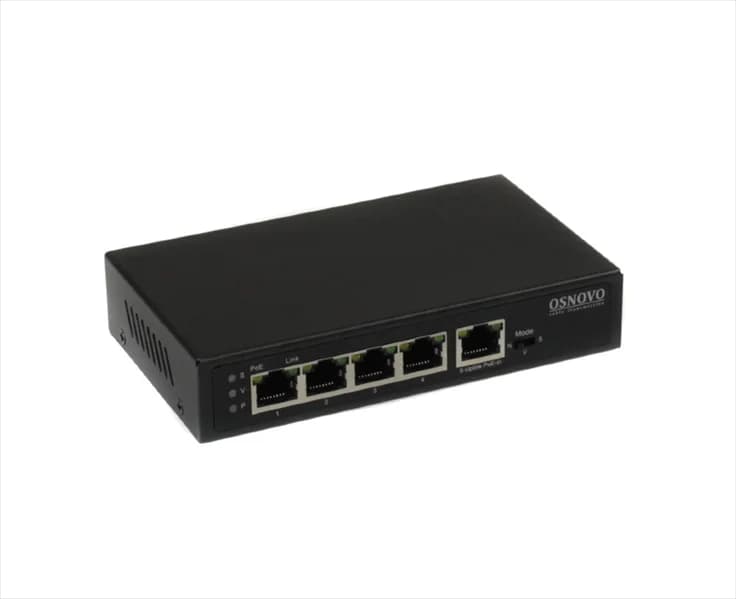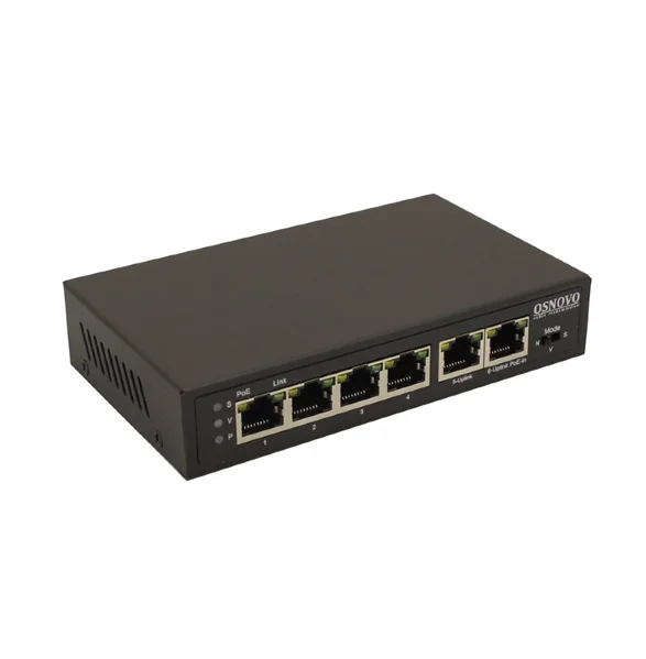PoE Коммутатор/удлинитель OSNOVO SW-20600/D PoE Коммутатор/ удлинитель Fast Ethernet на 6 портов с питанием по PoE. Порты: 4 х FE (10/100 Base-T) с поддержкой PoE, 1 x FE (10/100 Base-T) Uplink с поддержкой питания по PoE (доВ наличии