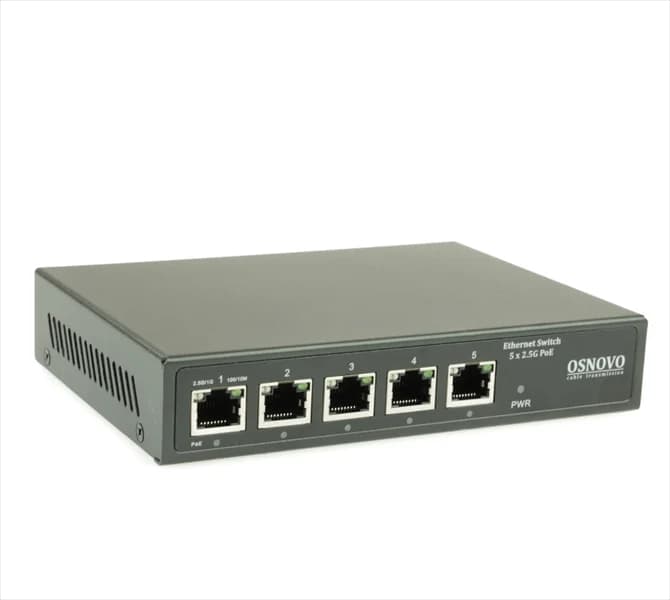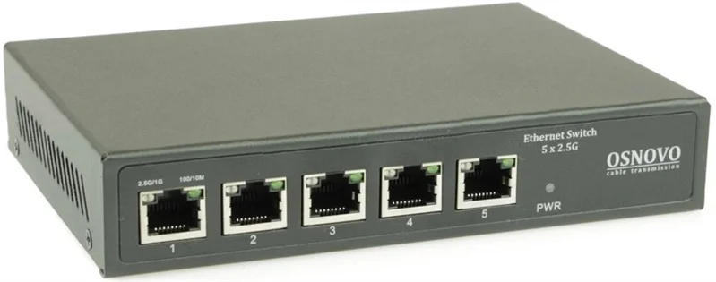 Коммутатор 2.5G Ethernet OSNOVO SW-5D-1 Коммутатор 2.5G Ethernet на 5 RJ45 портов. Порты: 5 x 2.5G (10/100/1000/2500Base-TX). Auto MDI/MDIX. Встроенная грозозащита 3кВ. В комплекте БП DC12V(2A). Размеры (ШхВхГ): 160x31x112мм.SW-5D-1· OSNOVOВ наличииВойти для цены