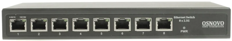 Коммутатор 2.5G Ethernet OSNOVO SW-8D-1 Коммутатор 2.5G Ethernet на 8 RJ45 портов. Порты: 8 x 2.5G (10/100/1000/2500Base-TX). Auto MDI/MDIX. Встроенная грозозащита 3кВ. В комплекте БП DC12V(2A). Размеры (ШхВхГ): 223x28x113мм.В наличии