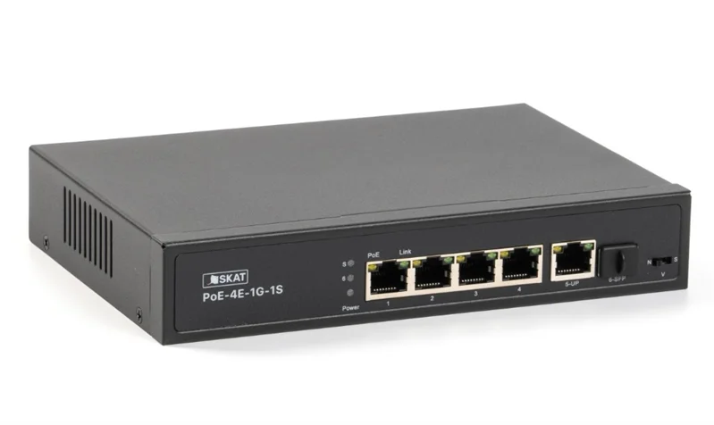 Коммутатор (4084) SKAT PoE-4E-1G-1S коммутатор PoE Plus, мощность 80Вт, порты: 4-Ethernet, 1-Uplink, 1-SFPВ наличии