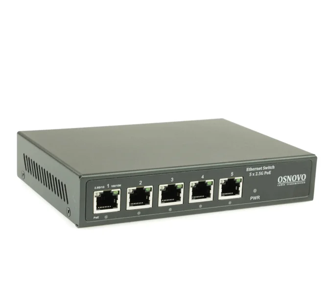 PoE Коммутатор OSNOVO SW-5D-1(60W) PoE коммутатор 2.5G Ethernet на 5 RJ45 портов. Порты: 1 x 2.5G (10/100/1000/2500Base-TX) с PoE (до 60W, A+B) + 3 x 2.5G (10/100/1000/2500Base-TX) с PoE (до 30W), 1 x 2.5G (10/100/1SW-5D-1(60W)· OSNOVOВ наличииВойти для цены