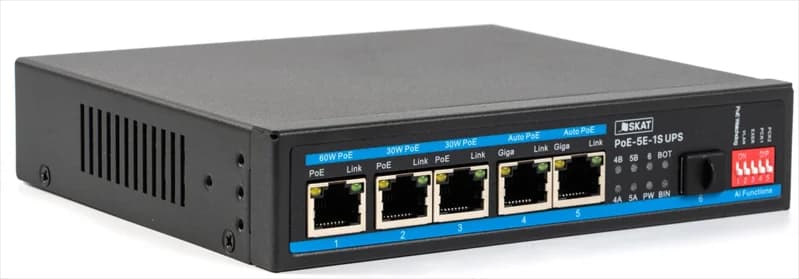 Коммутатор (4086) SKAT PoE-UPS-5E-1S бесперебойный POE коммутатор, мощность 75Вт, порты: 5-Ethernet, 1-SFPВ наличии