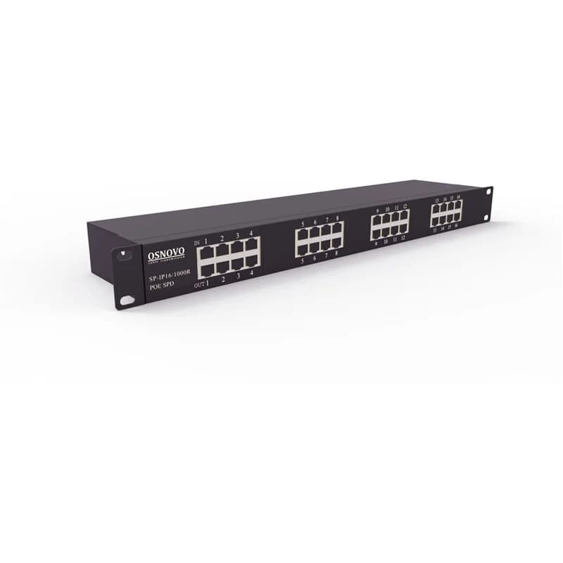 Грозозащита OSNOVO SP-IP16/1000PR 1U устройство грозозащиты для локальной вычислительной сети на 16 портов (скорость до 1000 Мб/с) с защитой линий PoE (af/at, методы A + B, контакты 1/2, 3/6, 4/5, 7/8). ДвухступеSP-IP16/1000PR· OSNOVOВ наличииВойти для цены