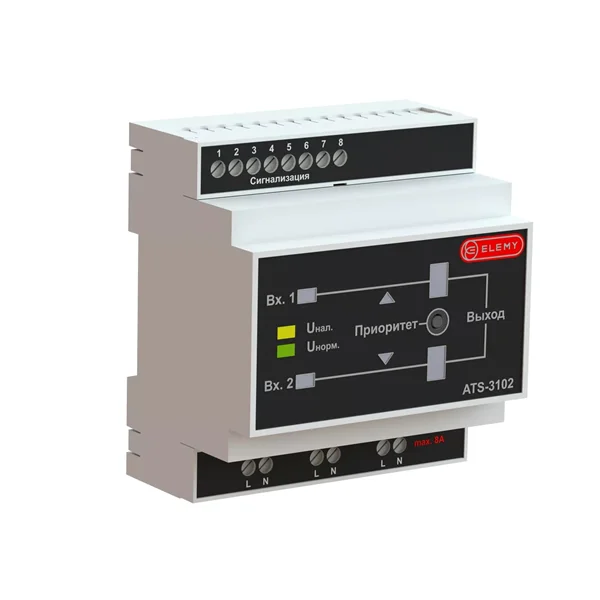 Автоматический ввод резерва ELEMY ATS 5DIN, 230V, 8А, in (2) клемма, out (1) клеммаATS-3102· ELEMYВ наличииВойти для цены