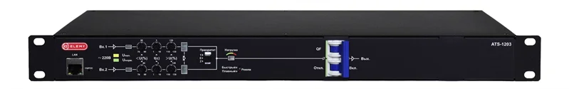 Автомат ввода резерва ELEMY ATS, 1U, 220B, 16A, Индикация: LED, Мониторинг: WEB, SNMP, Modbus-TCP Дискретные выходы, Вход (2) C20, Выход (1) C19 (6) C13ATS-1203/16/S/E/DO· ELEMYВ наличииВойти для цены