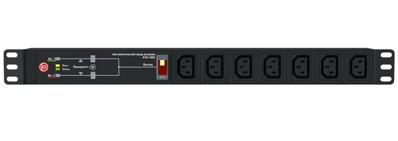 Автомат ввода резерва ELEMY ATS, 1U, 220B, 16A, Индикация: LED, Мониторинг: WEB, SNMP, Modbus-TCP Дискретные выходы, Вход (2) C20, Выход (1) C19 (6) C13В наличии