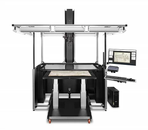 Универсальный автономный комплекс высококачественного сканирования (КВС) ЭларСкан А0 Формат до А0+, цветность 48/24 бит, моторизованная книжная колыбель с прижимным стеклом для оригиналов весом до 50 кг и толщиной 35 см (до 75 см без прижимного стекла)ЭС А0· ЭларНет в наличииВойти для цены