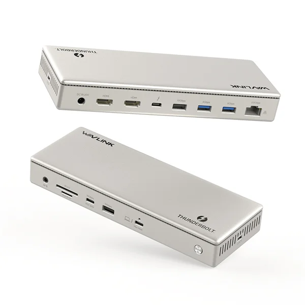 Док-станция Docking Station WAVLINK Thunderbolt 3 /60W Power Delivery Include 20V/6.5A Power Adapter/4xUSB3.0/1xUSB-C/2xDP 4K 60HZ/2xDP to HDMI 4K 60Hz adapter/1xGigabit LAN/1xCombo Audio JackВ наличии