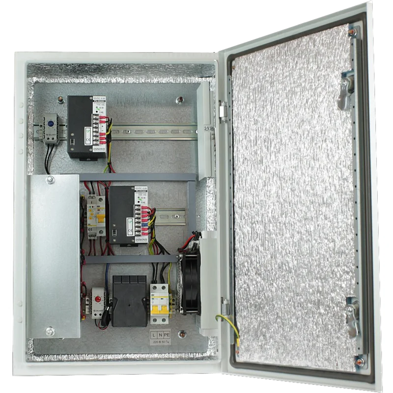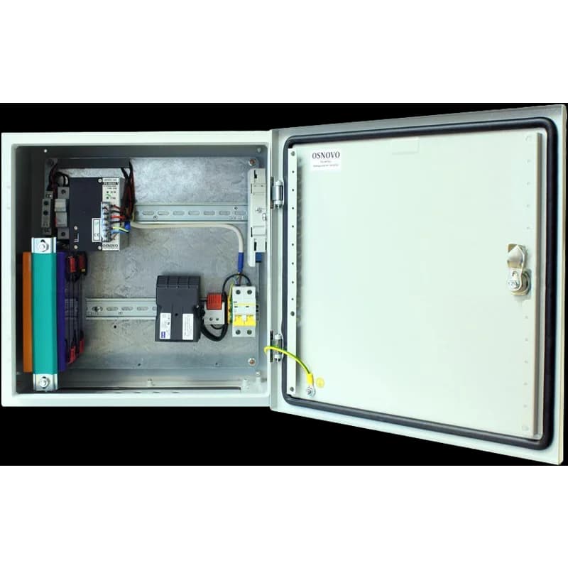 Уличная станция (термошкаф) OSNOVO OS-46TB1 Уличная станция с термостабилизацией, резервным питанием и оптическим кроссом. Промышленный БП DC48V(240W), АКБ 48В(7Ач). Защита АКБ от глубокого разряда. В основе металлический шкаф сOS-46TB1· OSNOVOВ наличииВойти для цены