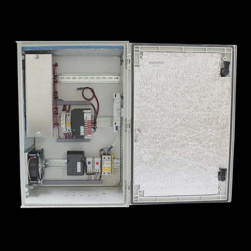 Уличная станция (термошкаф) OSNOVO OSP-46TB1 Уличная станция в пластиковом шкафу IP66 с термостабилизацией и оптическим кроссом. Радиопрозрачная конструкция. Промышленный БП DC48V(240W), АКБ 48В(7Ач). Защита АКБ от глубокого разOSP-46TB1· OSNOVOВ наличииВойти для цены