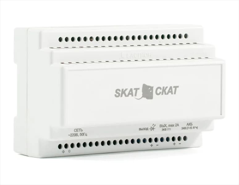 ИБП исполнения DIN (585) Бастион SKAT-24-2.0 DIN (СКАТ ИБП-24/2-DIN) источник питания 24В 2А пластиковый корпус под DIN рейку 35 ммНет — подобрать аналог