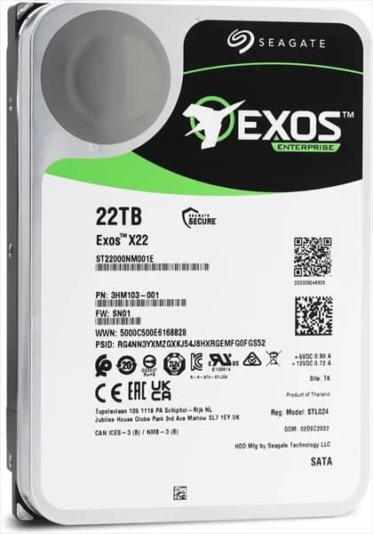 Жесткий диск Seagate Exos X22 HDD SATA 22Tb, 7200 rpm, 512Mb buffer, 512e/4Kn, CMR, ST22000NM001E, 1 yearВ наличии