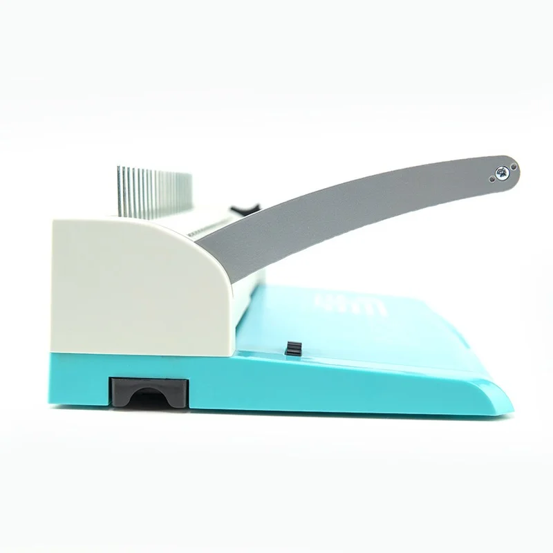 Удобная П-образная ручка для перфорации, позволяет браться с любой стороны. Для удобства перфорации листов имеется ограничитель для бумаги формата А4 и А5.