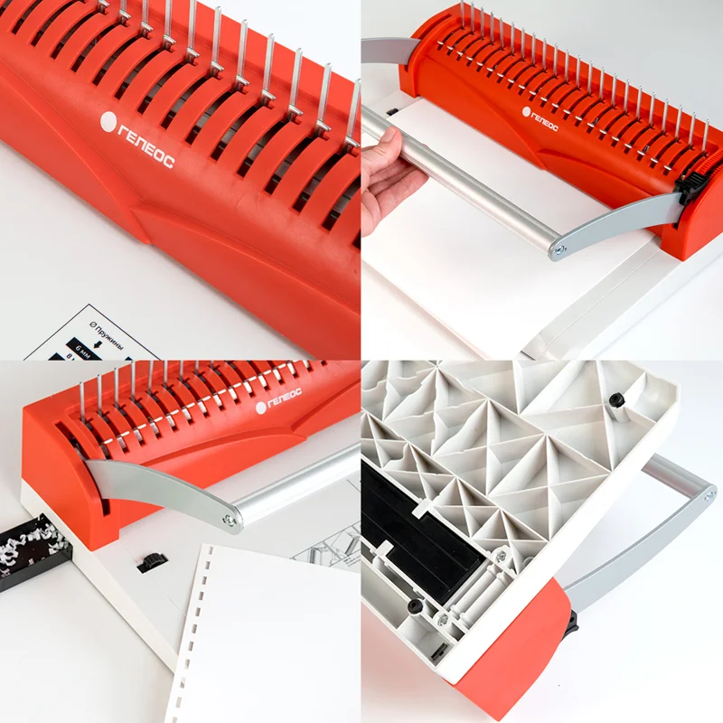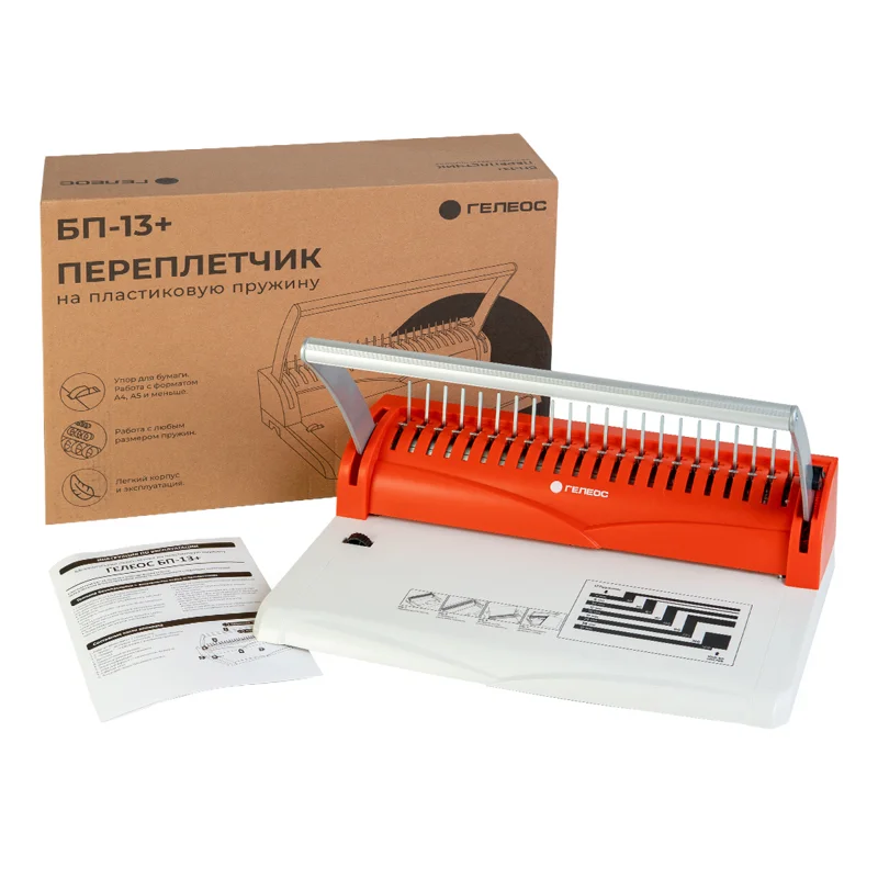 Качественный переплетчик на пластиковую пружину подходит для использования дома, а также в малом и среднем офисе. Позволяет переплетать большие бумажные блоки до 400-500 листов форматов А4 и меньше. Блок, оформленный на пластиковую пружину можно легко раскрывать на любой градус, исправить и дополнить. Удобная П-образная ручка для перфорации, позволяет браться с любой стороны. Для удобства перфорации листов имеется ограничитель для бумаги формата А4 и А5.