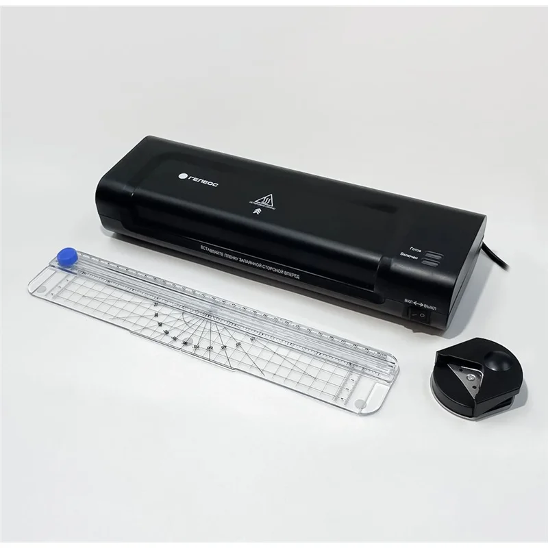 Ламинатор для офиса и дома. ГЕЛЕОС Комбо имеет полный набор базовых функций. Ламинирует бумагу форматом до А4. В случае замятии пленки предусмотрена функция разжима валов. В комплект поставки входит: ламинатор, резак для бумаги, обрезчик углов, стартовый набор пленок.