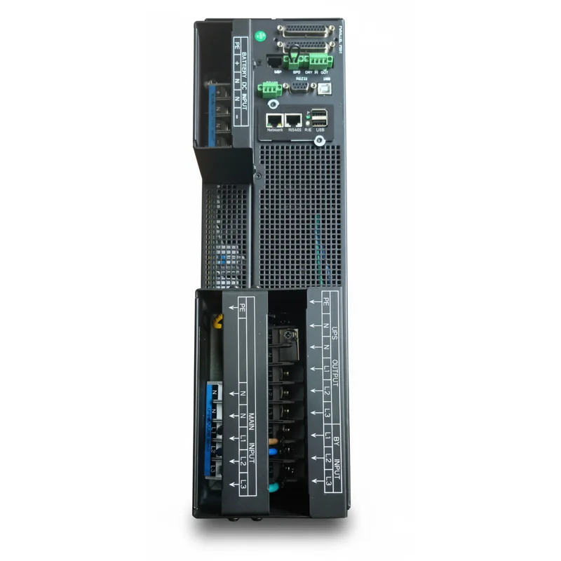 ИБП поставляется в универсальном корпусе высотой 3U. Комплектный внешний байпас упрощает техническое обслуживание без отключения нагрузки. Мощное встроенное зарядное устройство быстро восстанавливает заряд аккумуляторов, что важно при частых отключениях сети. Для удаленного контроля и управления доступен полный набор интерфейсов, включая опциональную SNMP-карту.