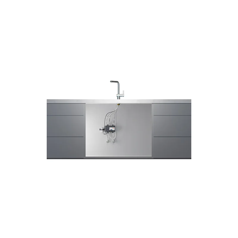 Инфракрасный датчик, реагирующий на движение руки в зоне экрана на расстоянии 5–10 сантиметров, мгновенно включает и выключает воду. Сенсорное управление особенно удобно при обработке продуктов и приготовлении пищи, поскольку оно позволяет многократно включать и выключать воду, что способствует снижению её расхода, например, при мытье рук.