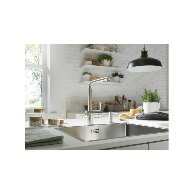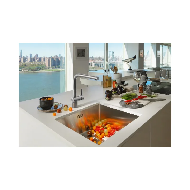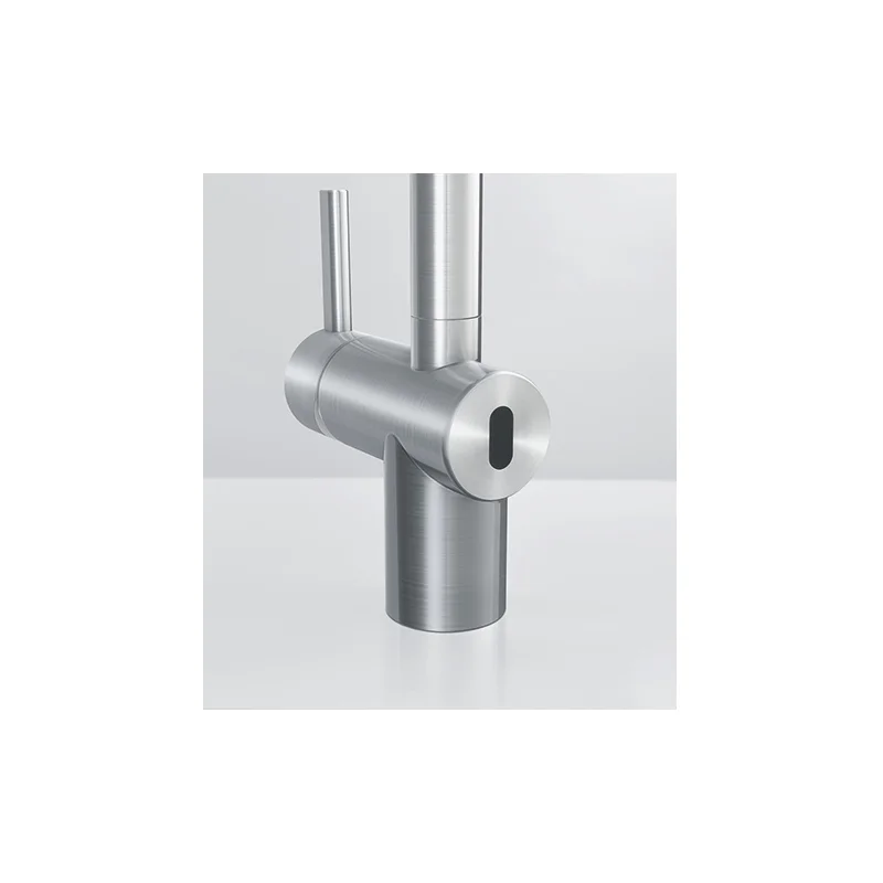 Смеситель Franke Atlas Neo Sensor Pull-Out, выполненный из нержавеющей стали, оснащён поворотным изливом. Он может быть включён вручную с помощью рычага или автоматически, бесконтактным способом.