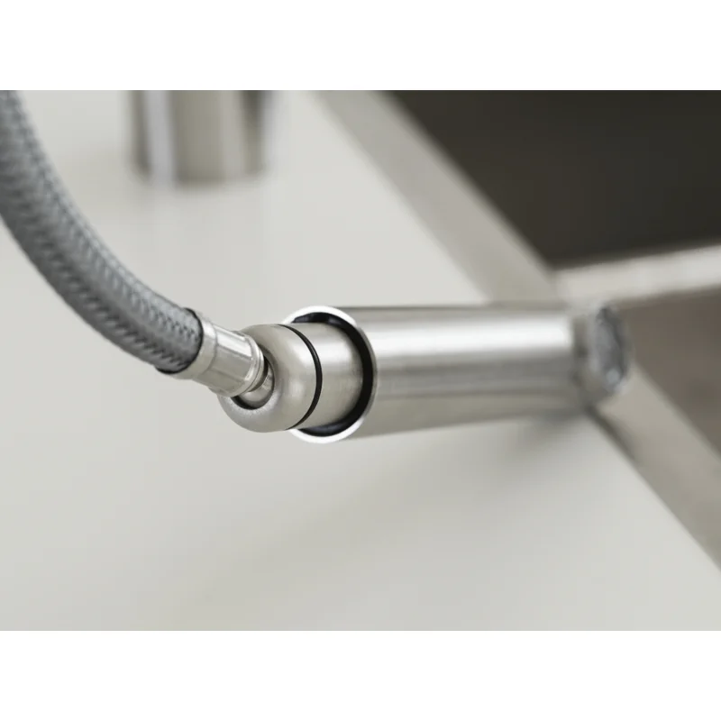 Носик крана имеет высокую высоту, что позволяет максимально использовать пространство раковины при приготовлении пищи с большими кастрюлями и сковородками.