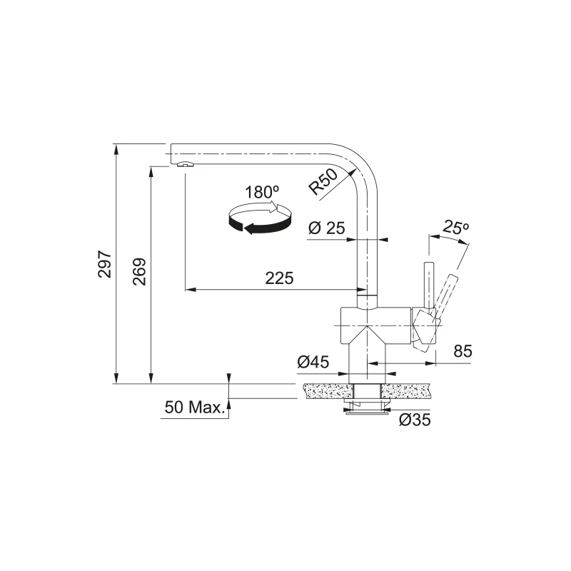 Бесконтактное и ручное управление смесителем работают независимо друг от друга, обеспечивая удобство использования. Излив смесителя можно повернуть на 180°, что делает его эксплуатацию ещё более комфортной.