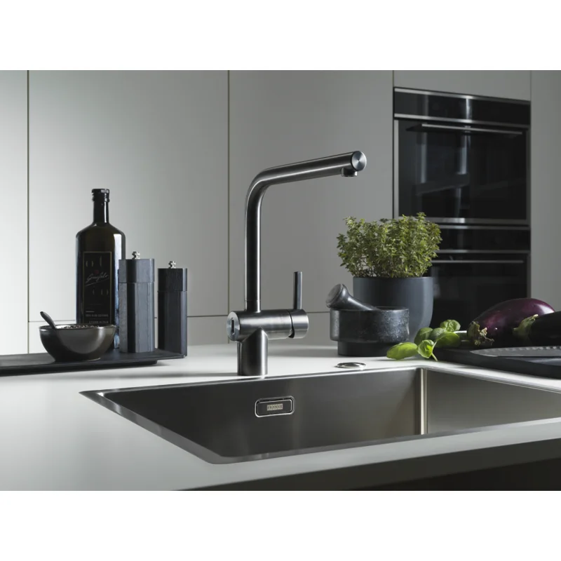 Смеситель Franke Atlas Neo Sensor Pull-Out, выполненный из нержавеющей стали, представляет собой инновационное решение для вашей кухни. Он оснащён поворотным изливом, который можно включить вручную с помощью рычага или же бесконтактно, используя инфракрасный датчик.