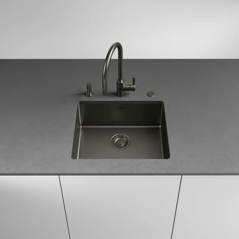 Габариты мойки 540 x 450 мм с глубокой чашей 500 x 410 x 200 мм. В ней легко помещаются кастрюли, противни и сковороды, что делает мытье посуды и подготовку продуктов максимально комфортными. Глубина чаши предотвращает разбрызгивание воды, сохраняя столешницу сухой. Три варианта монтажа — сверху, вровень и под столешницу — позволяют интегрировать мойку идеально, учитывая особенности вашей кухонной столешницы и дизайнерские предпочтения.