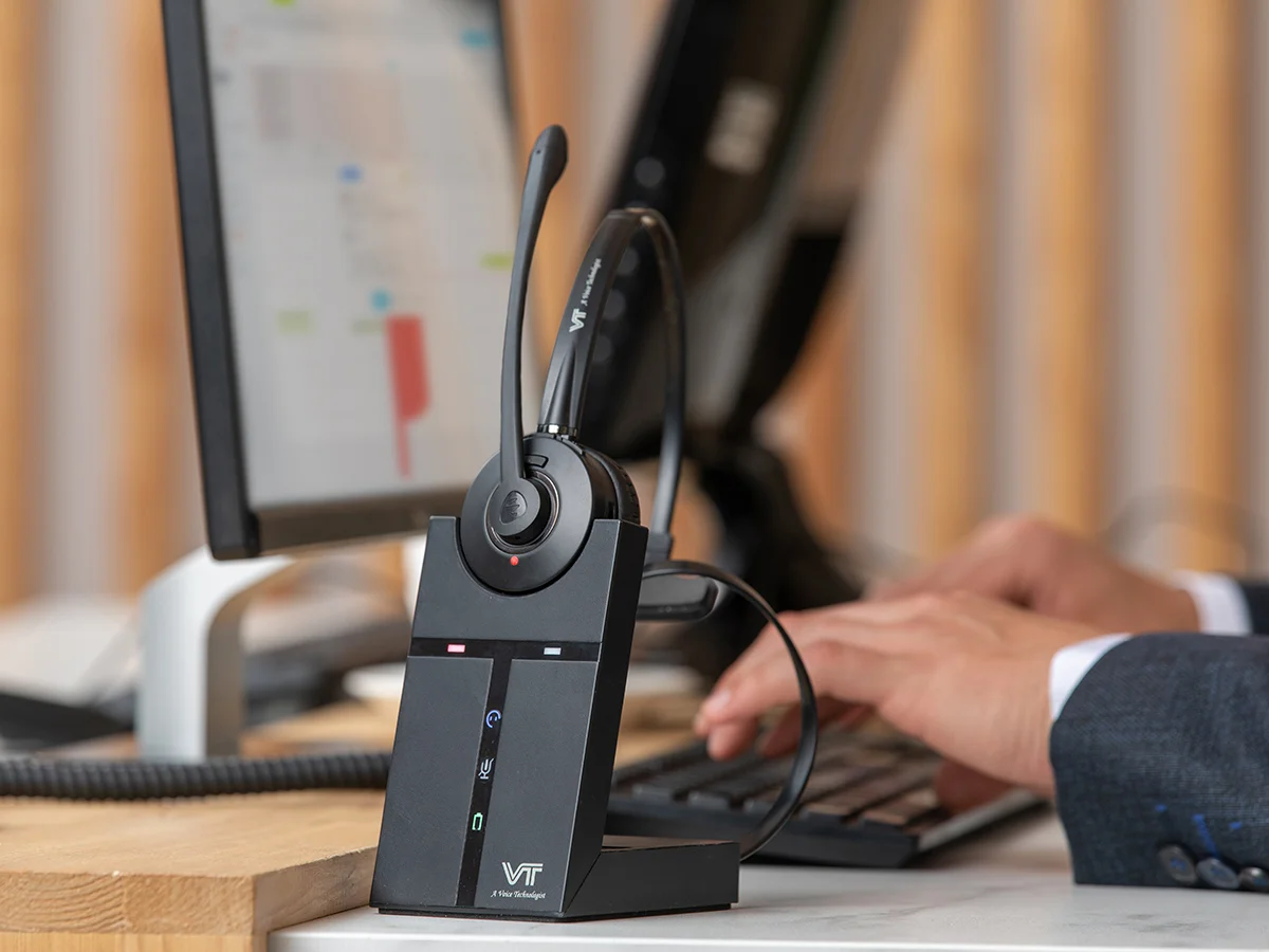 Гарнитура VT9000 оснащена многофункциональной клавишей для быстрой обработки вызовов. Имеет функцию шумоподавления микрофона и улучшенную функцию защиты органов слуха с технологией SafeTone™. Гарнитура работает с любым настольным IP-телефоном. Устройство обеспечивает удаленное управление вызовами на расстоянии до 30 метров от базы в помещении и до 150 метров вне помещения, а ёмкий аккумулятор позволяет использовать гарнитуру в режиме разговора до 8 часов.