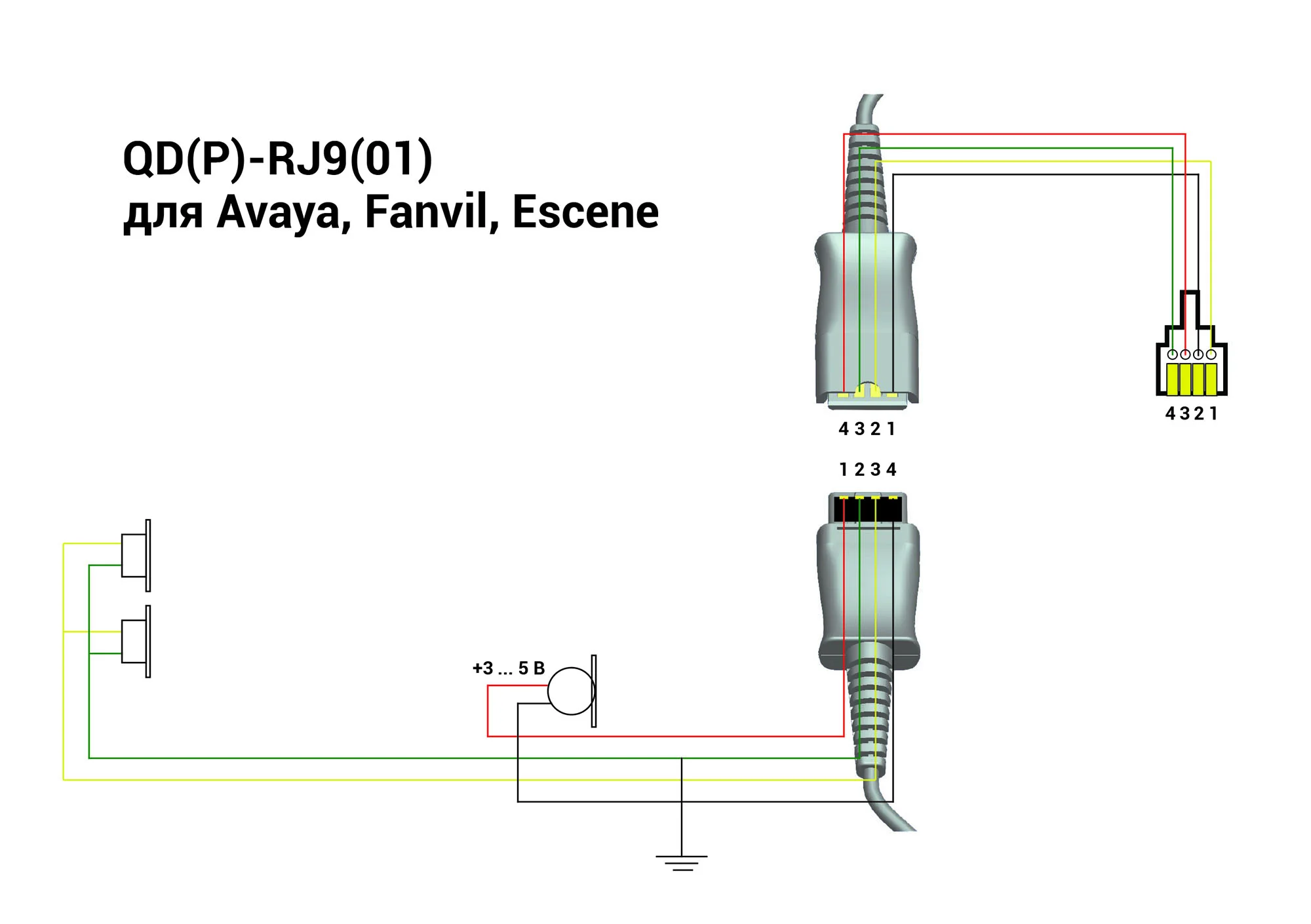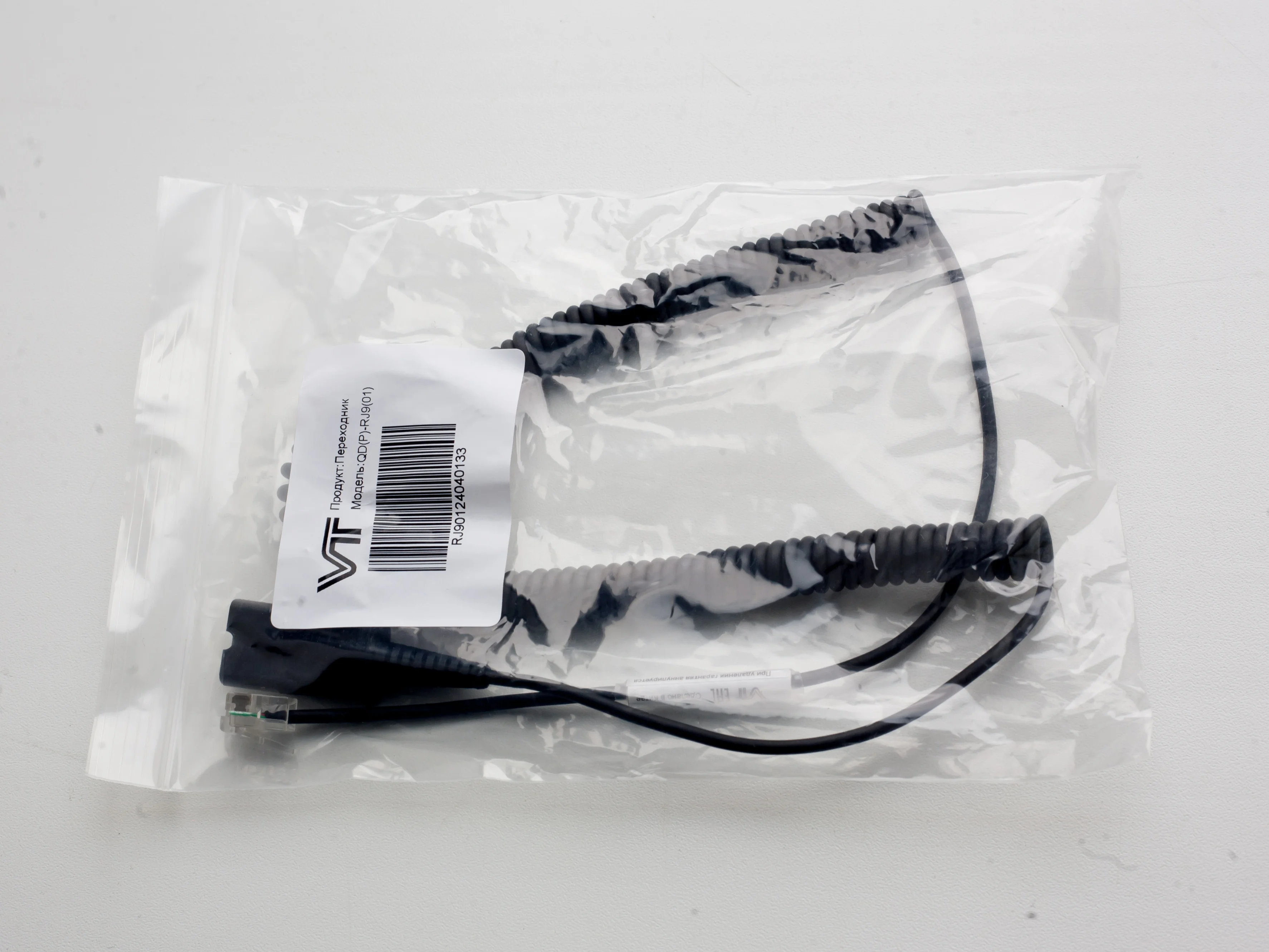Шнур-переходник QD — RJ9 (01) для подключения гарнитур VT к аналоговым телефонам и к IP-телефонам Avaya, Polycom, Mitel, Astra, Fanvil, Digium, Escene, Nec, Sangoma, Alcatel, Audiocodes, Gigaset. Разъем QD (тип Plantronics).