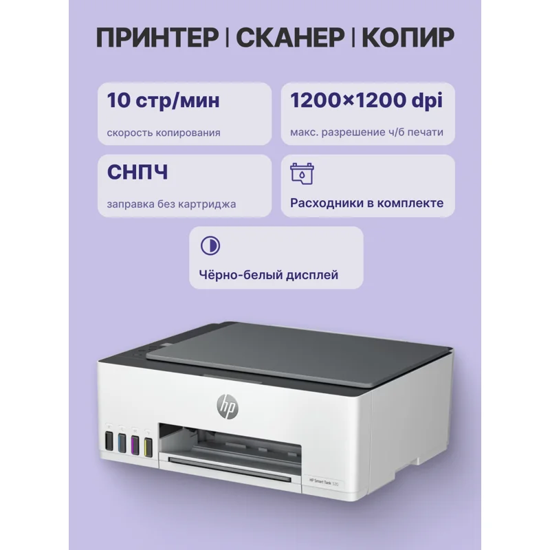 МФУ HP Smart Tank 520 обеспечивает надежную повседневную печать с высоким качеством, характерным для продукции HP, и неожиданно большую экономию .