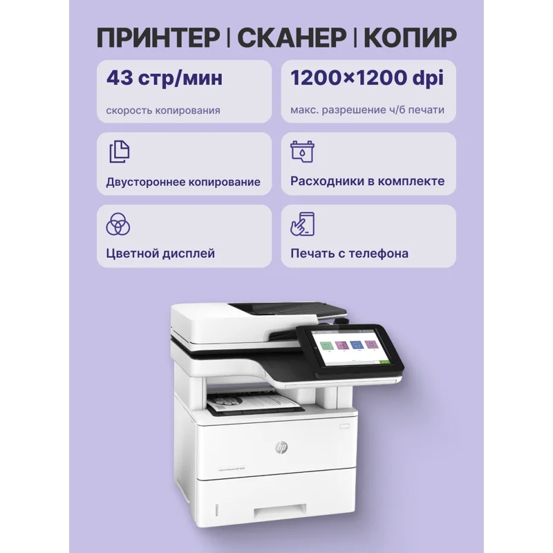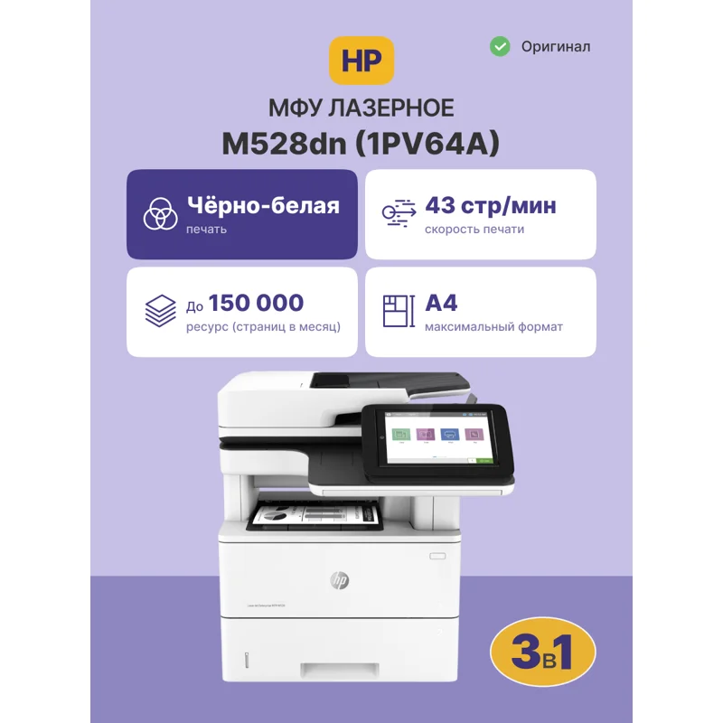 Лазерное многофункциональное устройство HP LaserJet Enterprise MFP M528dn (p/c/s, A4, 1200 dpi, 43ppm, 1.75GB, 16GB eMMC, 2trays 100+550, ADF 100, Duplex, USB/GigEth, repl.F2A76A)
