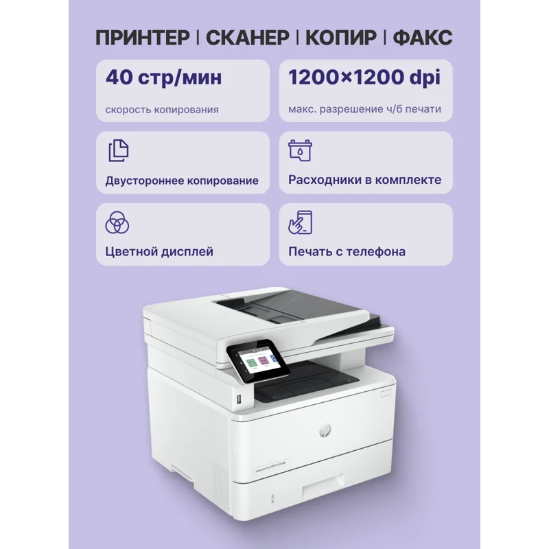 Лазерное многофункциональное устройство HP LaserJet Pro MFP 4103fdn (p/c/s/f , A4, 40 ppm, 512Mb, Duplex, 2 trays 100+250,DADF 50, USB 2.0/GigEth ,W1510A in box, repl.W1A29A)