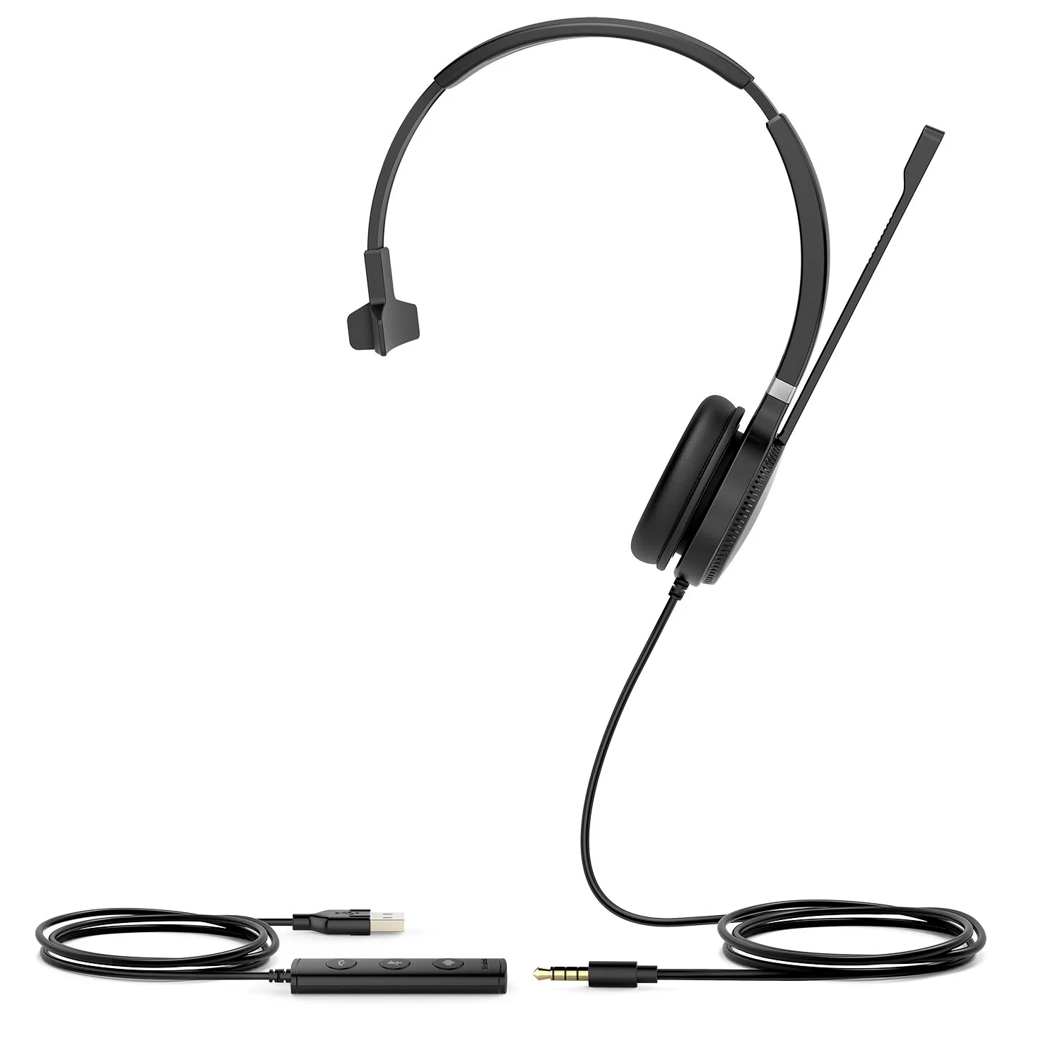 UH36 Mono поставляется с разъемами USB и 3,5 мм, с помощью которых гарнитуру можно подключать к различным устройствам: IP-телефону, персональному компьютеру, планшету и смартфону.
