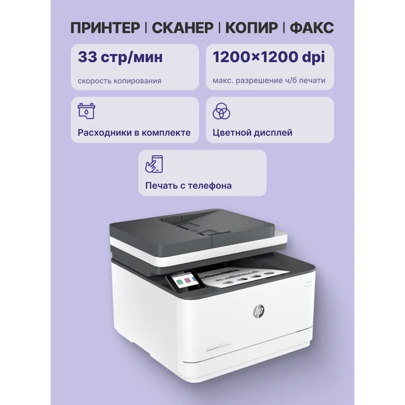 Лазерное многофункциональное устройство HP LaserJet Pro MFP 3103fdw (A4,p/c/s/f,1200 dpi, 33ppm, 512 Mb, Duplex, ADF, 800 MHz, tray 250, USB+Ethernet+WiFi, Duty 50K, in box W1450A)