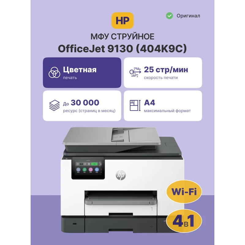 HP OfficeJet Pro 9130 представляет собой современное струйное многофункциональное устройство (МФУ), разработанное компанией HP для офисных задач. Модель 404K9C отличается компактными размерами и функциональностью, что делает её отличным выбором для малого бизнеса и домашних офисов.