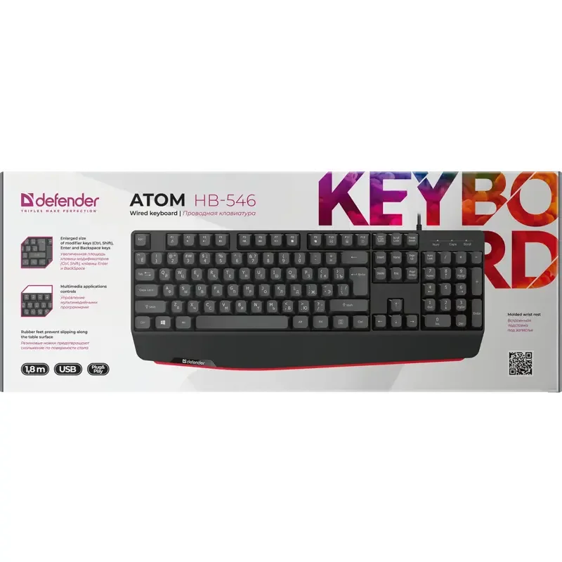 Проводная клавиатура Defender Atom HB-546 RU — это практичное и надежное решение для дома или офиса. Модель выполнена в черном цвете, оснащена мембранными кнопками, которые работают тихо и мягко. Благодаря подключению через USB и длинному кабелю (1,8 м) устройство легко интегрируется как в стационарный компьютер, так и в ноутбук, обеспечивая комфортную рабочую дистанцию от системного блока.