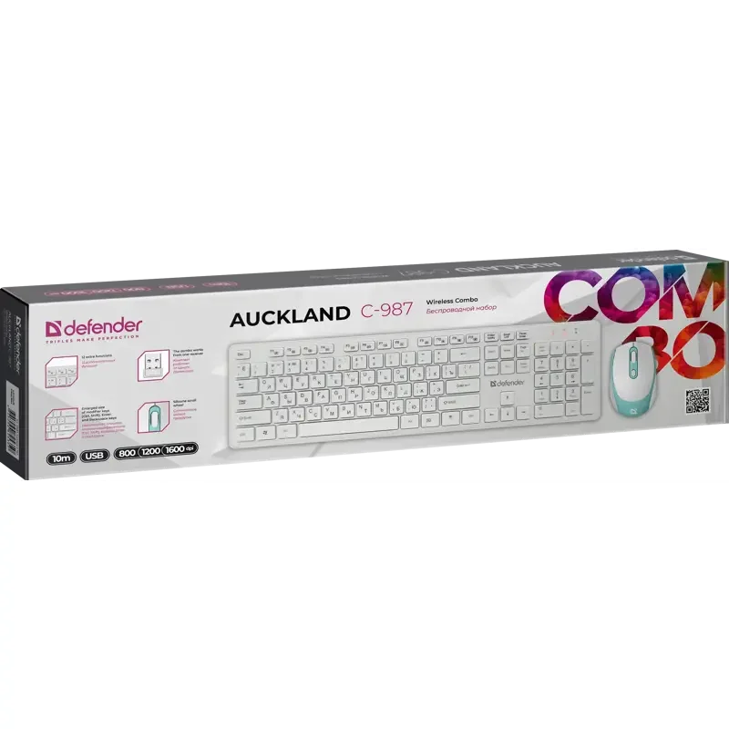 Стильный беспроводной офисный набор в белом цвете. В набор входит полноразмерная клавиатура с плоскими кнопками и мышь с симметричной формой, удобной для работы любой рукой. Комплект работает от одного приемника.