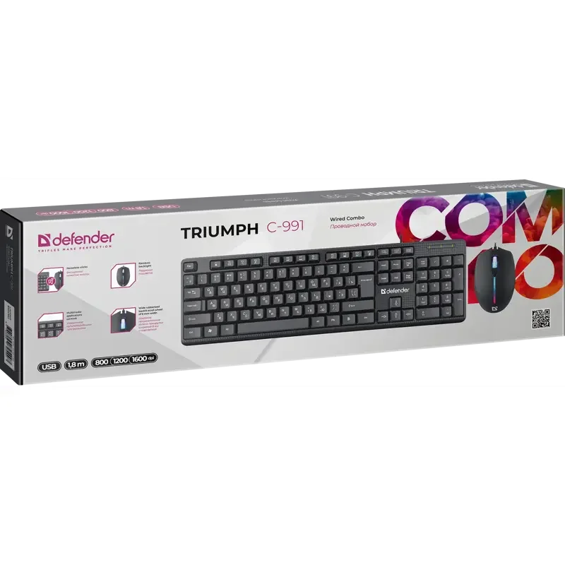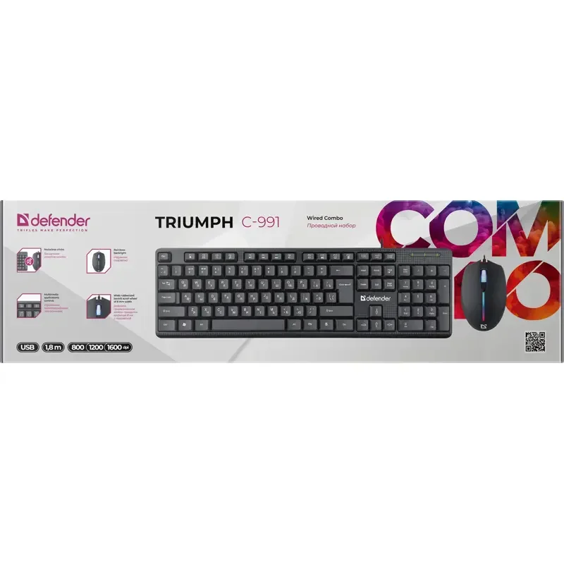 Defender Проводной набор Triumph C-991 RU - это современный и функциональный компьютерный набор, сочетающий в себе высококачественную клавиатуру и мышь. Он разработан для пользователей, которые ценят комфорт, производительность и стиль.