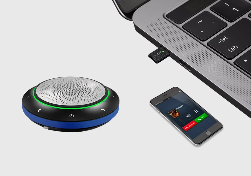 Совместимость. Спикерфон VT CS61ENC-A cовместим со всеми современными компьютерами/ноутбуками/смартфонами. Поддерживает подключение по Bluetooth, по USB-Type C (Type A через переходник, в комплекте). В комплекте имеется заранее сопряжённый USB-Dongle, таким образом спикерфон можно легко подключить к любому компьютеру, даже без встроенного Bluetooth модуля.