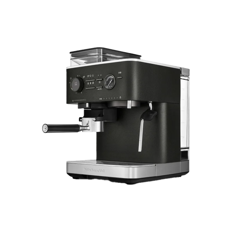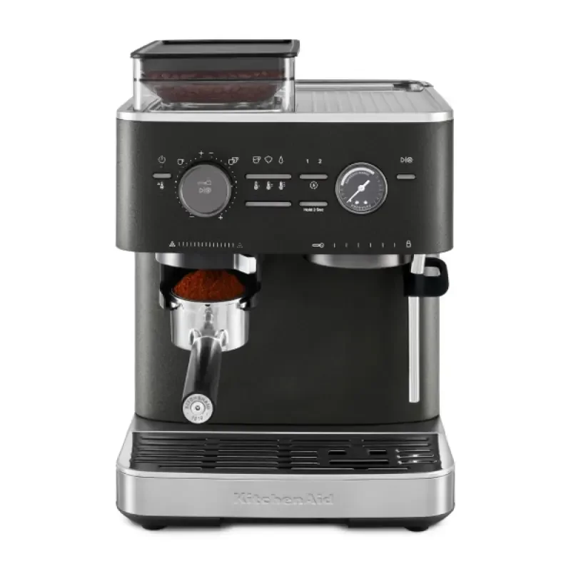 Полуавтоматическая кофемашина KitchenAid 5KES6551EBK выполнена в элегантном цвете «чёрный чугун», который придаёт устройству роскошный внешний вид. Прочный металлический корпус обеспечивает долговечность и надёжность конструкции. Мощность и производительность кофемашины впечатляют: давление помпы достигает 15 бар, что гарантирует насыщенный вкус эспрессо и плотную пенку. Объём резервуара для воды 2,5 литра позволяет приготовить до 33 порций напитка без дополнительного наполнения.