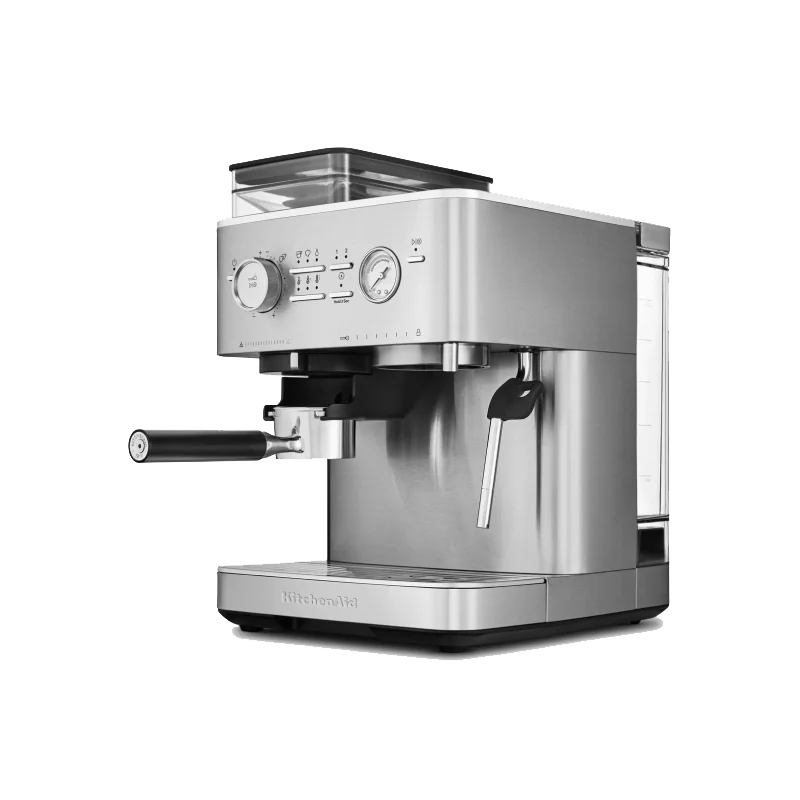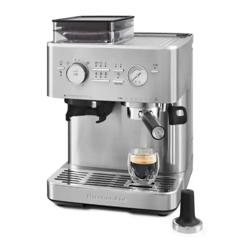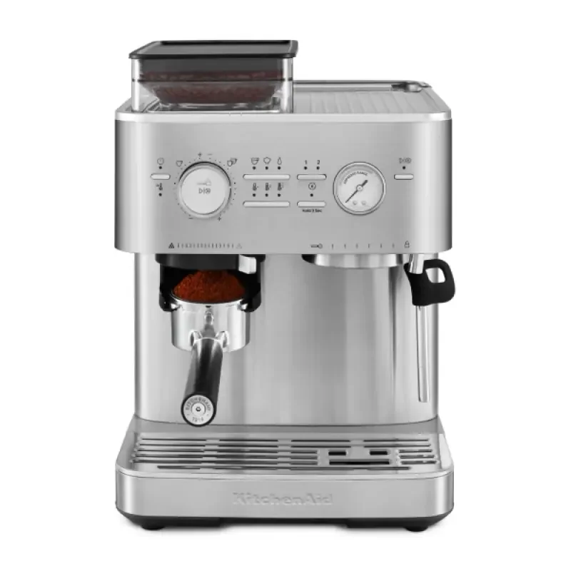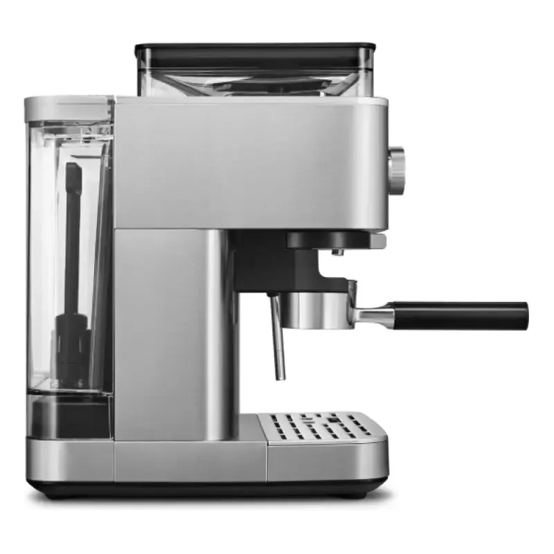 Полуавтоматическая кофемашина KitchenAid 5KES6551ESX выполнена в элегантном цвете «чёрный чугун», который придаёт устройству роскошный внешний вид. Прочный металлический корпус обеспечивает долговечность и надёжность конструкции. Мощность и производительность кофемашины впечатляют: давление помпы достигает 15 бар, что гарантирует насыщенный вкус эспрессо и плотную пенку. Объём резервуара для воды 2,5 литра позволяет приготовить до 33 порций напитка без дополнительного наполнения.