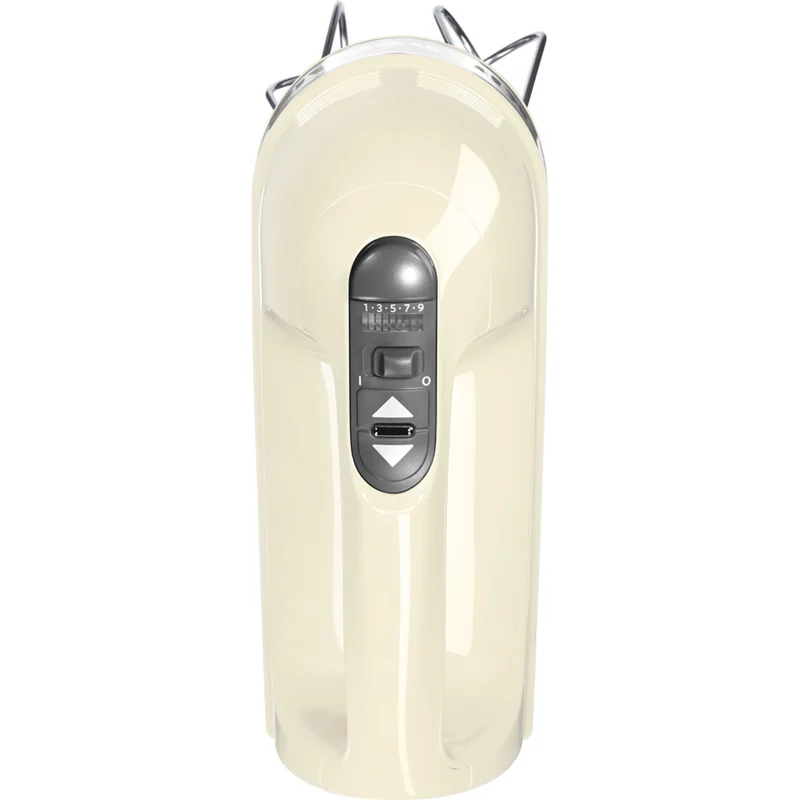 Положитесь на компактные размеры и получите превосходные результаты. Делайте любую еду кулинарным шедевром с помощью 9-скоростного цифрового ручного миксера KitchenAid. Диапазон из девяти скоростей расширяет ваши творческие возможности: низкие скорости идеальны для помешивания деликатных соусов или молочных коктейлей безо всякого разбрызгивания. На более высоких скоростях можно замешивать густое тесто. А самые большие скорости подходят для идеального взбивания яичных белков. Цифровой ручной миксер – младший брат классического настольного миксера KitchenAid, особенно подходящий для деятельных поваров или тех кулинаров, у кого весьма ограничено пространство столешницы. Положитесь на компактные размеры и получите превосходные результаты: от восхитительных дежурных блюд до уточенных яств на выходные. Вы также можете положиться на неизменное высокое качество техники KitchenAid. Сделанный в США, надежный электродвигатель постоянного тока (85 Вт) сочетается с цифровым светодиодным дисплеем, обеспечивая точность и мощность. Поддержка всего диапазона аксессуаров означает, что вам по плечу любые рецепты для выпечки и кондитерских изделий. Две турбовзбивалки из нержавеющей стали, входящие в стандартный комплект поставки, великолепно справляются с густыми смесями и большими объемами. Четыре следующих аксессуара включают в себя два крюка для замешивания теста, 16-проволочный венчик, стержневой смеситель и чехол из хлопка для хранения. Выбор из четырех классических цветов: ярко красный, черный матовый, кремовый и серебряный медальон. Весящий 1,1 кг и имеющий мягкую удобную ручку, ручной миксер достаточно легок и комфортен для управления одной рукой. Свободно вращающийся шнур обеспечивает дополнительную гибкость при обращении с прибором, позволяя вам перемещаться. Добавьте этот прибор в свое семейство KitchenAid или поприветствуйте нового помощника на кухне, вносящего креативность в процесс приготовления пищи.