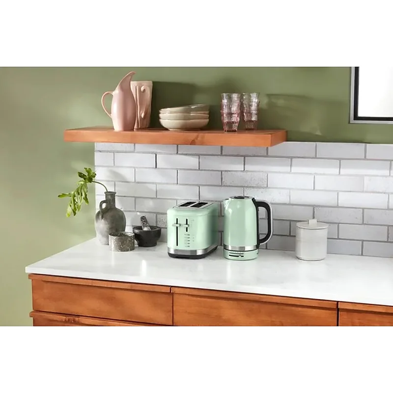Тостер KitchenAid 5KMT2109EER — воплощение элегантности, созданное для тех, кто ценит безупречный дизайн. С его культовым ретро-силуэтом и фисташковым покрытием литого металлического корпуса он станет стильным акцентом любой кухни и будет гармонично сочетаться с другой техникой производителя. За эстетикой скрывается функциональный прибор, который поможет быстро приготовить вкусные и сытные завтраки и перекусы.