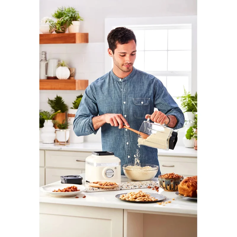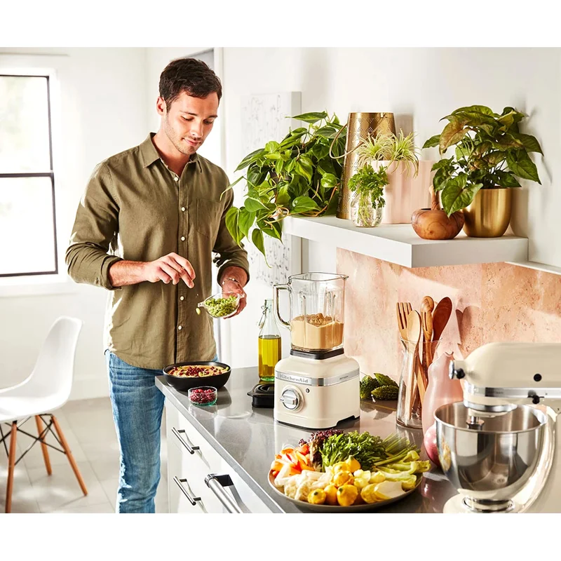 Стационарный блендер K400 5KSB4026EMH создан для быстрого и эффективного измельчения продуктов, позволяя готовить крем-суп, детское питание, ореховую пасту, соус, пюре или смузи за считанные секунды! Блендер оснащен трехсоставной системой, которая работает в полной гармонии — это уникальный асимметричный нож из нержавеющей стали, чаша с ребристой поверхностью для постоянного контакта содержимого с лезвиями, а также мотор Intelli-Speed мощностью 1,5 л. с., который распознает содержимое чаши и поддерживает оптимальную скорость смешивания.