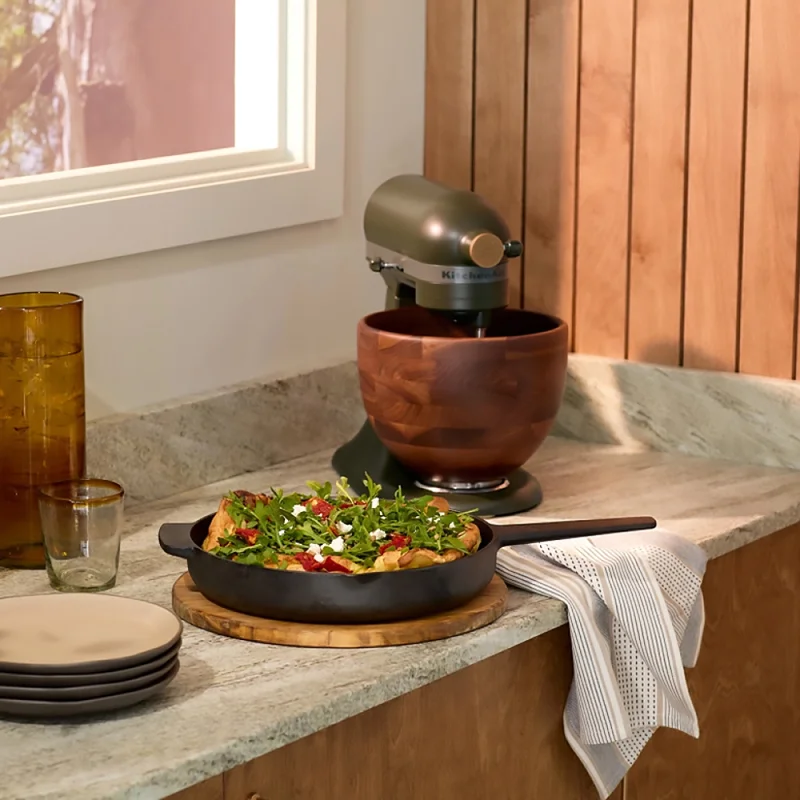 Главной особенностью этой модели является чаша из натурального ореха. Каждая чаша имеет уникальный древесный рисунок, что делает ваш миксер по-настоящему эксклюзивным. Чаша абсолютно безопасна для контакта с пищевыми продуктами и придает процессу приготовления особый шарм. Переднее крепление с латунным покрытием и тематической гравировкой дополняет ноты изысканности. Глянцевые ручки переключателей темно-зеленого цвета создают гармоничный монохромный дизайн, который станет эффектным акцентом на любой кухне.