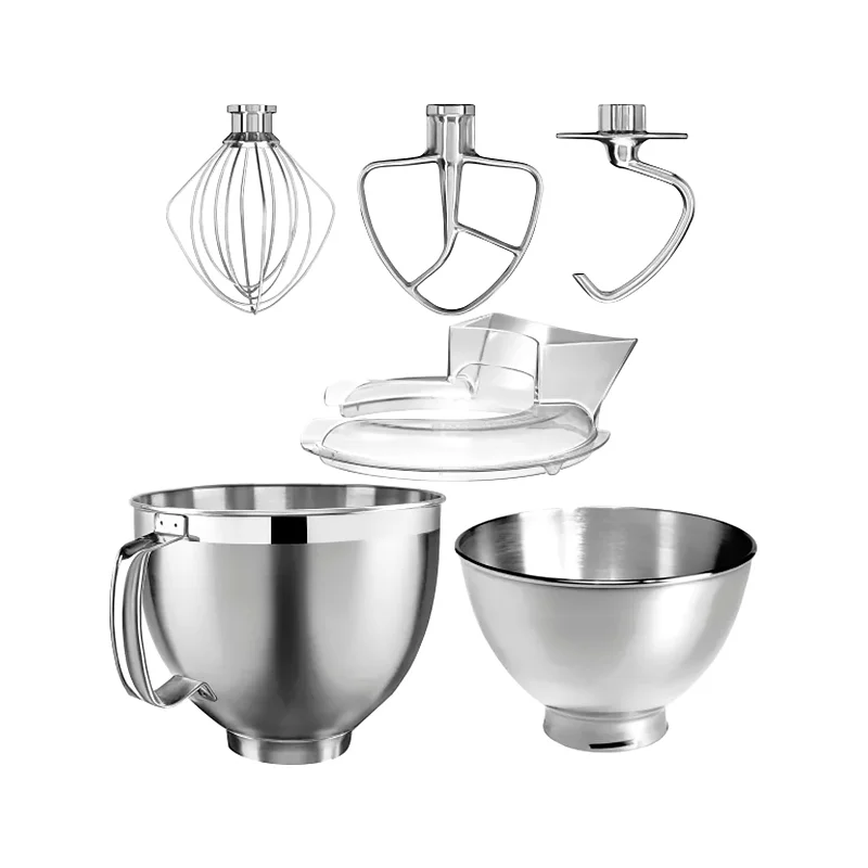 Откидной блок упрощает установку и снятие чаши, делая процесс использования миксера более удобным. Чаша объемом 4,8 литра позволяет готовить большие порции теста или крема, что особенно удобно для семейных торжеств или выпечки на продажу. Чаша изготовлена из нержавеющей стали, что обеспечивает её прочность, долговечность и легкость очистки.
