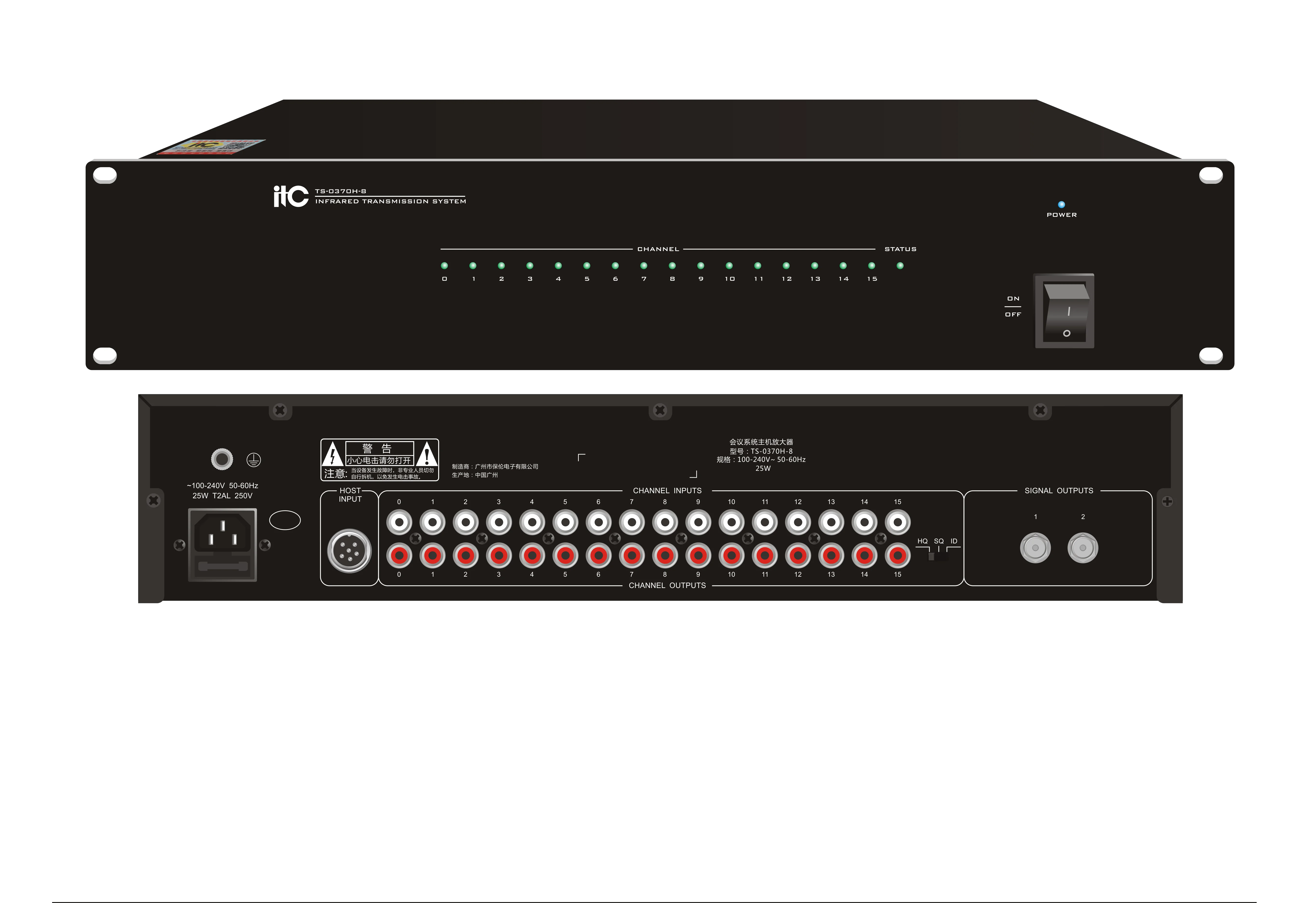 Цифровой контроллер TS-0370H-8 является основной частью цифровой инфракрасной системы распределения голоса. Полностью цифровая DQPSK-модулированная передача с цифровым кодированием звука. Контроллер может принимать аудио сигналы от пультов переводчиков и одновременно передавать их как 8 каналов/языков перевода на ИК излучатель Контроллер может быть установлен в стандартную 19-дюймовую стойку. Соответствие МЭК 61603-7 и МЭК 60914.