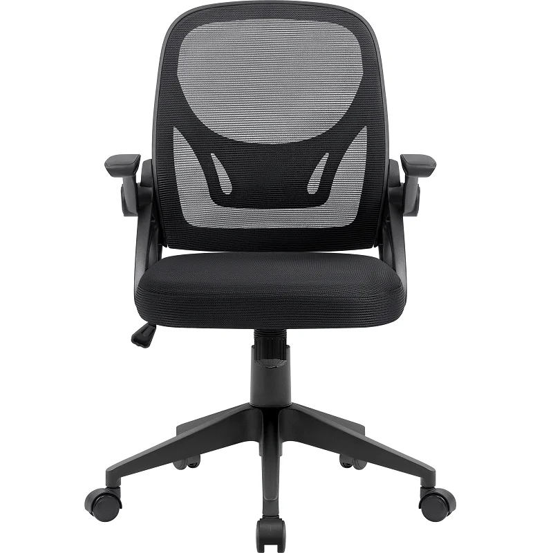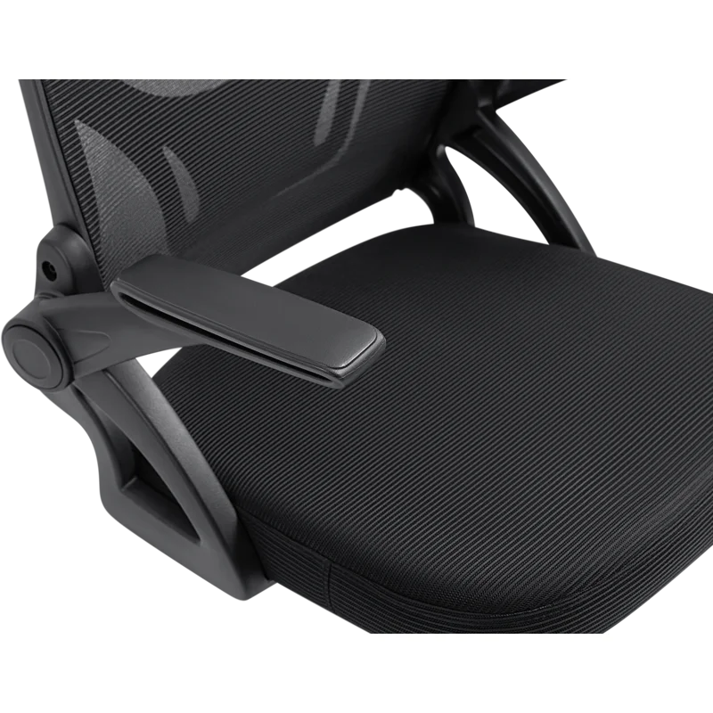 Удобное офисное кресло с поясничным упором и подлокотниками, которые можно поднимать для удобства. Спинка кресла выполнена из плотного сетчатого материала, обивка сиденья - из износостойкой ткани. Также кресло имеет механизм качания.