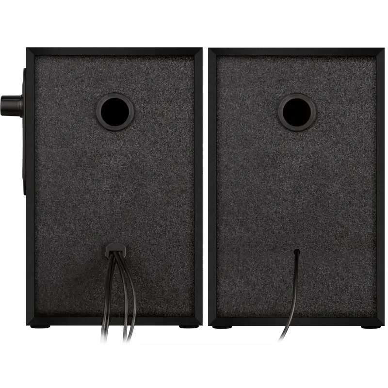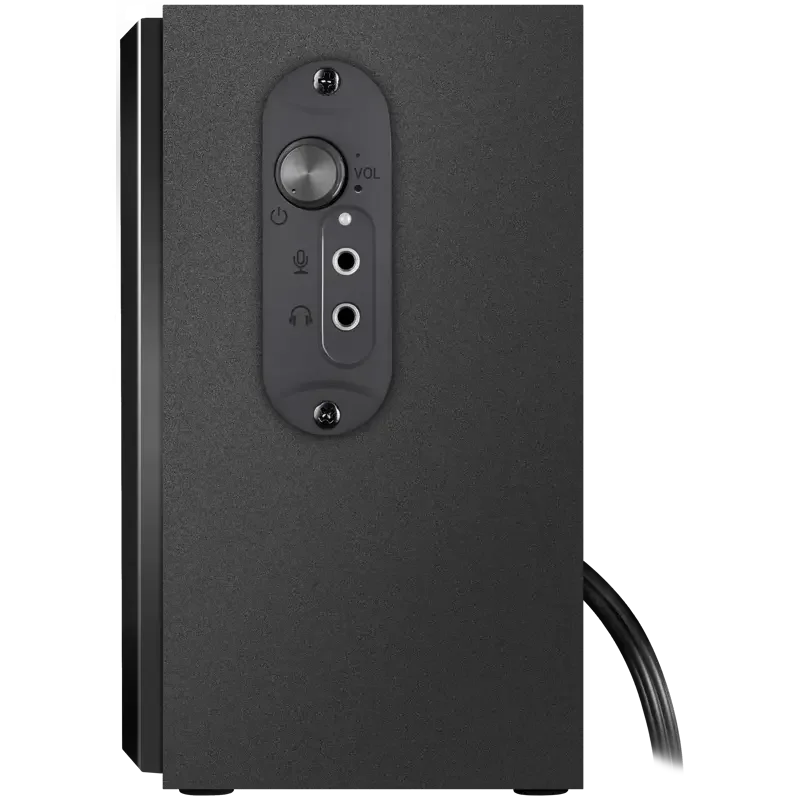 Активная стереосистема в деревянном корпусе. Для удобства использования на боковой панели присутствует регулятор громкости с выключателем, индикатор питания, разъемы для гарнитуры.